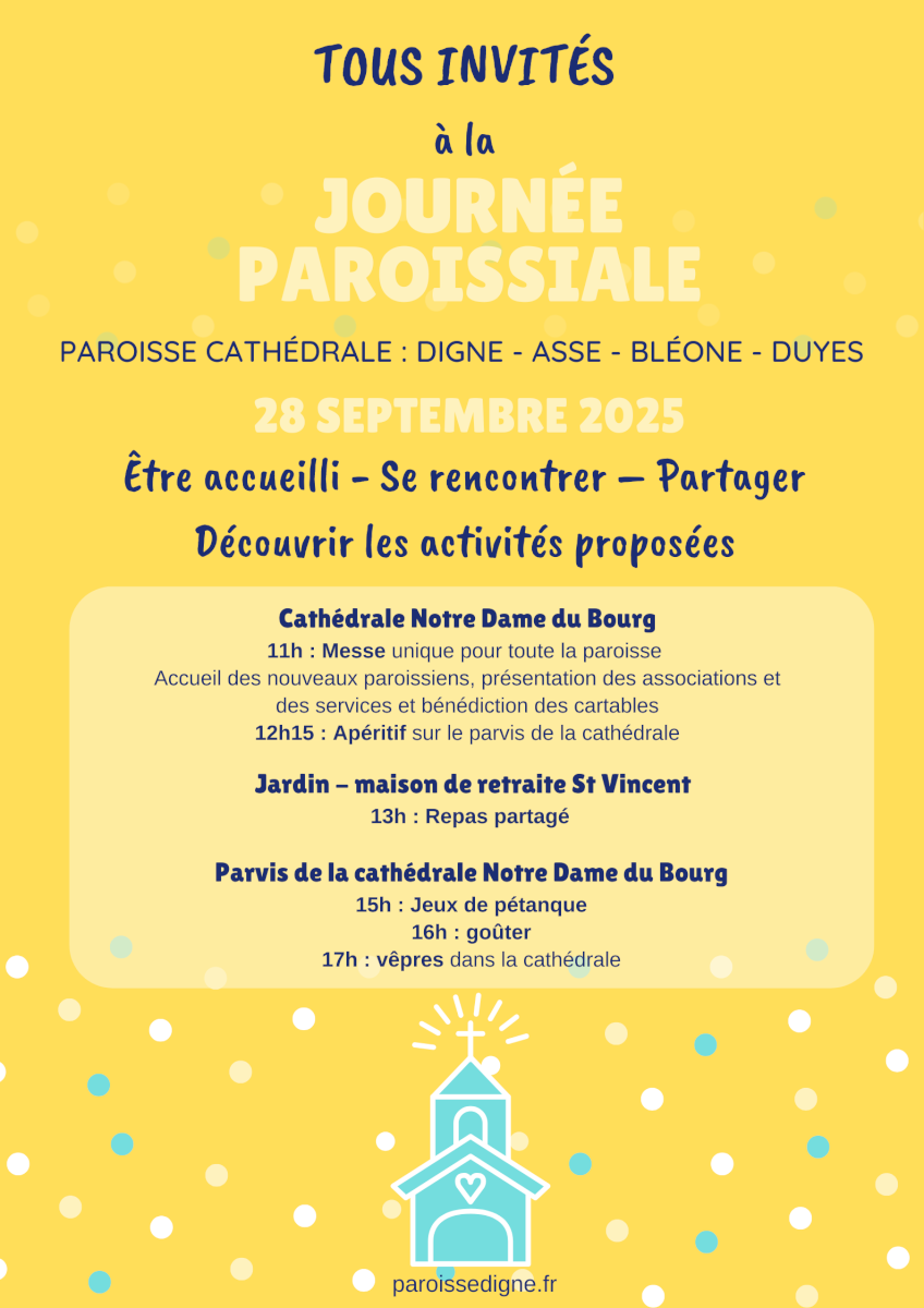 Rentrée paroissiale 28 septembre 11h Cathédrale Notre-Dame du Bourg voir le programme 6 septembre 2025 dans Actualité